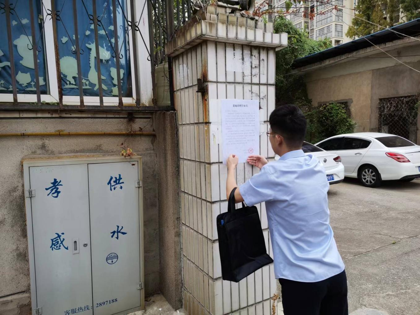 檢查小組一行到一水廠張貼了《菜地清理告知書》并對水廠宿舍樓周邊進行察看。檢查發現,除一水廠復式樓院墻邊小菜園外,原廢棄清水庫上面也有居民種菜,存在巨大安全隱患。