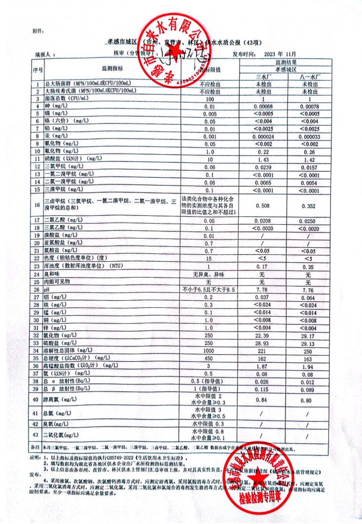 2023年11月水質(zhì)報(bào)告