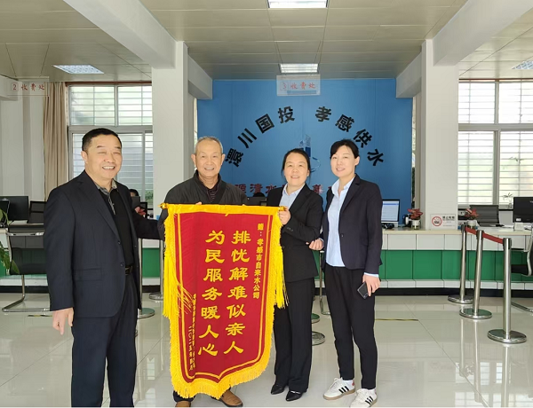 4月14日上午,槐蔭小區(qū)的余先生將一面繡有“排憂(yōu)解難似親人 為民服務(wù)暖人心”的錦旗贈(zèng)予自來(lái)水公司,并對(duì)自來(lái)水公司員工的辛勤工作表示了衷心的感謝。