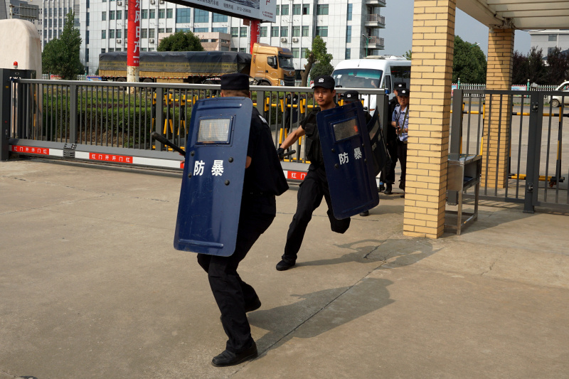 5月17日15時30分,一來歷不明的“暴恐分子”突然闖入我公司三水廠廠區,意圖持刀“行兇”;水廠保安人員迅速報警,并利用防暴器械與其周旋。隨后公安特勤人員快速趕到現場,一舉將“暴恐分子”包圍制服,果斷處置了一場突發“暴恐”事件。