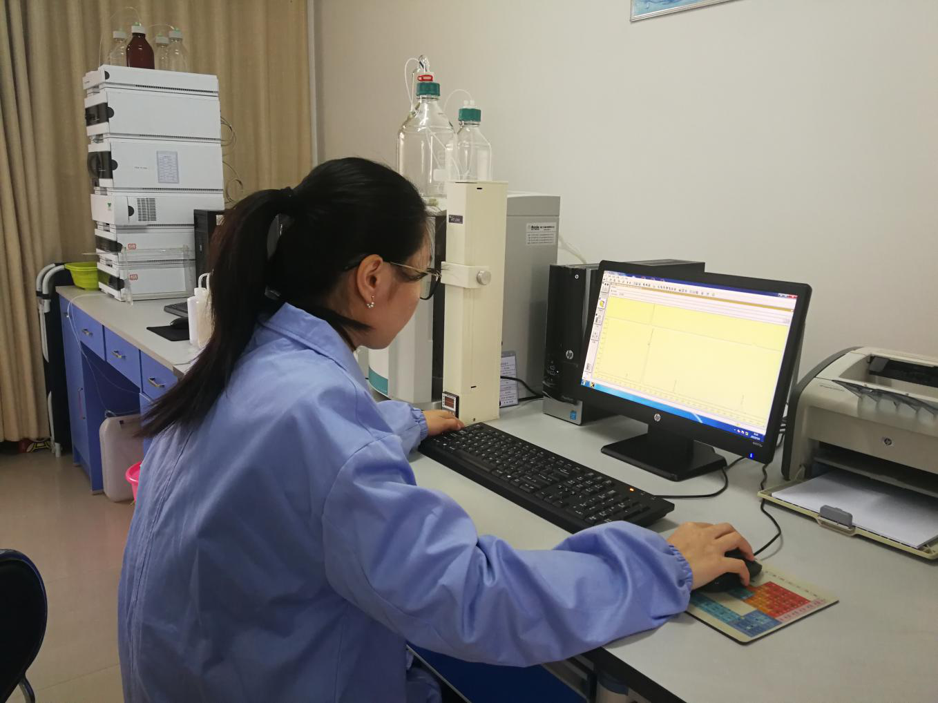 水質(zhì)檢測(cè)是安全供水的前提,更是安全供水的基礎(chǔ)。2015年,公司組建了仙泉水質(zhì)檢測(cè)有限責(zé)任公司,投入大量資金購(gòu)買(mǎi)原子吸收分光光度計(jì)、原子熒光光度計(jì)、氣相色譜儀、離子色譜儀等專(zhuān)業(yè)儀器設(shè)備,承擔(dān)公司出廠(chǎng)水、源水水質(zhì)日檢、半月檢、月檢及年檢等相關(guān)水質(zhì)檢測(cè)工作。通過(guò)對(duì)水質(zhì)的濁度、PH值,余氯等指標(biāo)數(shù)據(jù)監(jiān)測(cè)結(jié)果與水質(zhì)在線(xiàn)檢測(cè)儀比對(duì)數(shù)值,時(shí)刻掌握數(shù)據(jù)變化趨勢(shì),加強(qiáng)對(duì)出廠(chǎng)水的常規(guī)檢測(cè)頻次,密切關(guān)注水質(zhì)變化,全力保證水質(zhì)安全。