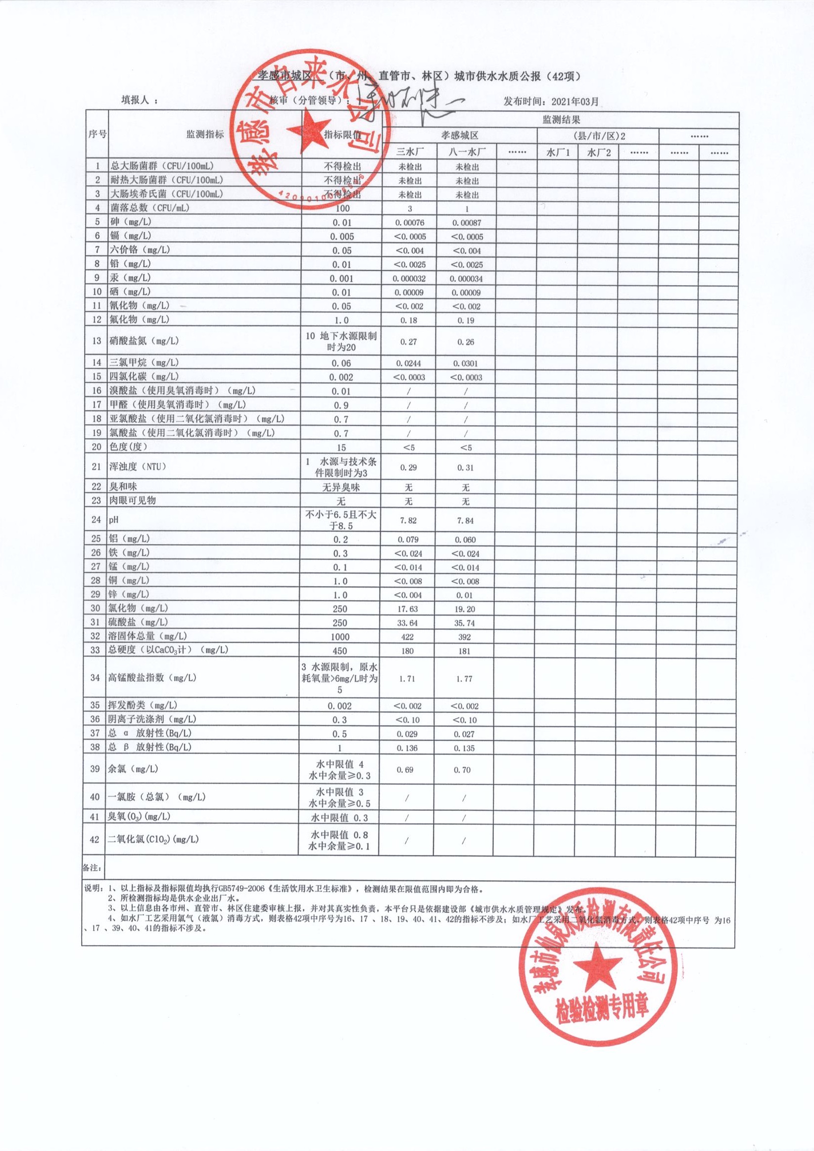 2021年3月水質(zhì)報告