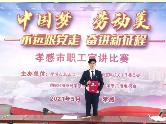 為慶祝建黨一百周年,推動群眾性主題宣傳教育活動走深走實,5月8日,“中國夢·勞動美——永遠跟黨走 奮進新征程”孝感市職工宣講比賽決賽舉行,公司新員工梁航參加了此次演講比賽。